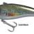 Präsentation, ist aber auch fängig, wenn man ihn langsam einholt. Die Lauftiefe beträgt 1,2m und ist dank der slow Sinking Eigenschaft variabel. Die Holofolie und Fischschuppen sorgen für starkes